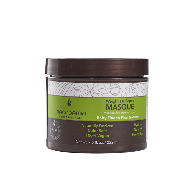 Para cabellos finos. Esta mascarilla ligera nutre y fortalece las hebras individuales para ayudar a reparar y prevenir contra daños futuros. Weightless Repair Masque revitaliza el cabello seco y dañado con una hidratación instantánea. Deja el cabello desenredado, suave y sin encrespamiento y mejora la elasticidad.
