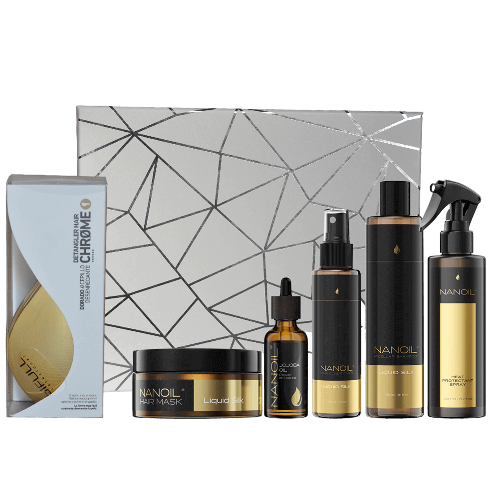 El spray protector de Nanoil protege la melena del calor de la plancha, el secador y el rizador. Crea una capa protectora, incrementando la resistencia del pelo a los daños causados por las herramientas de peinado con altas temperaturas. Está formulado con proteínas de seda, que potencian la suavidad, la nutrición y el brillo del cabello.